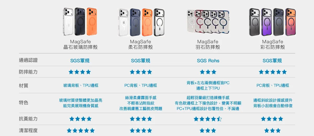 軍規保護殼採 TPU+PC / TPU+玻璃材質研發生產,TPU 材質部份因其材質特性與個人使用習慣,日常使用後會慢慢出現變黃、變髒的情形,屬於正常損耗;PC 與玻璃的部份則會隨著時間而變髒或者有細微刮傷的使用痕跡,是不會變黃的。