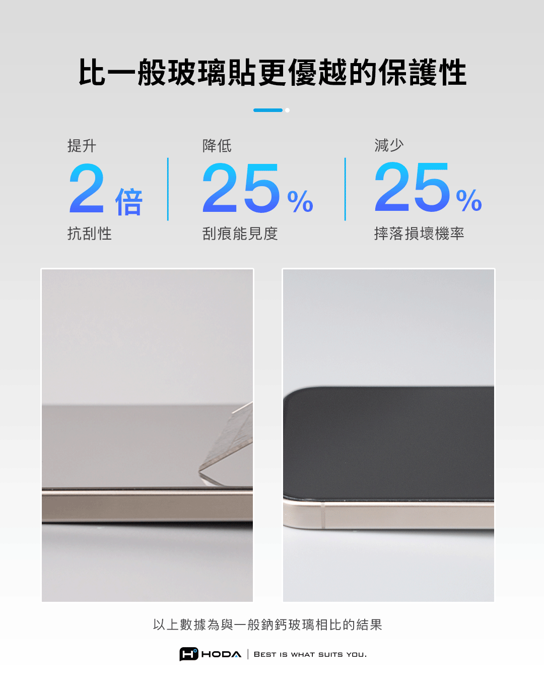 ✦ 高硬度玻璃結合耐衝擊結構,可降低25%損壞機率!