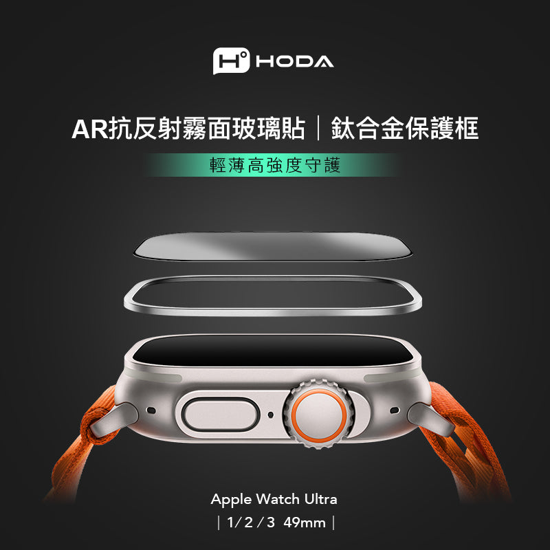 AR抗反射霧面玻璃保護貼 Apple Watch Ultra 3/2/1 49mm (附鈦合金保護框) | HODA®