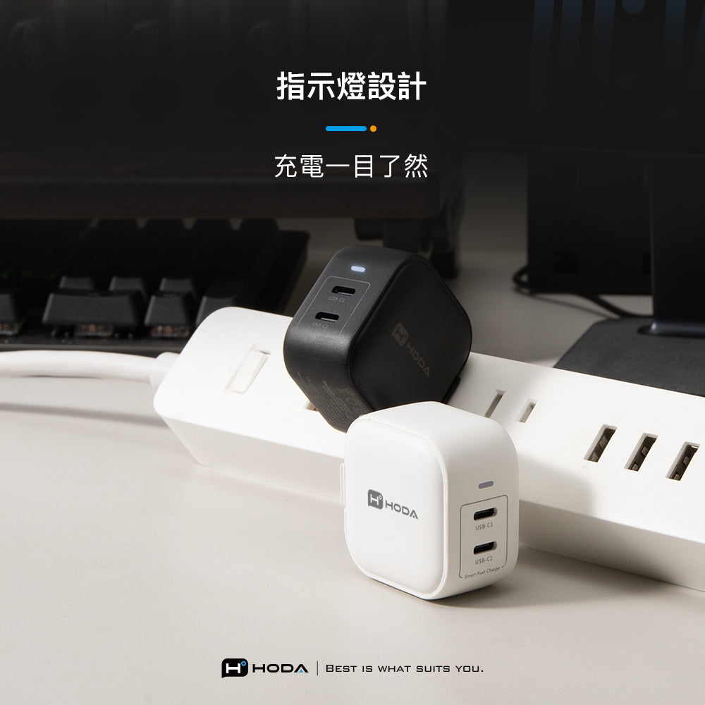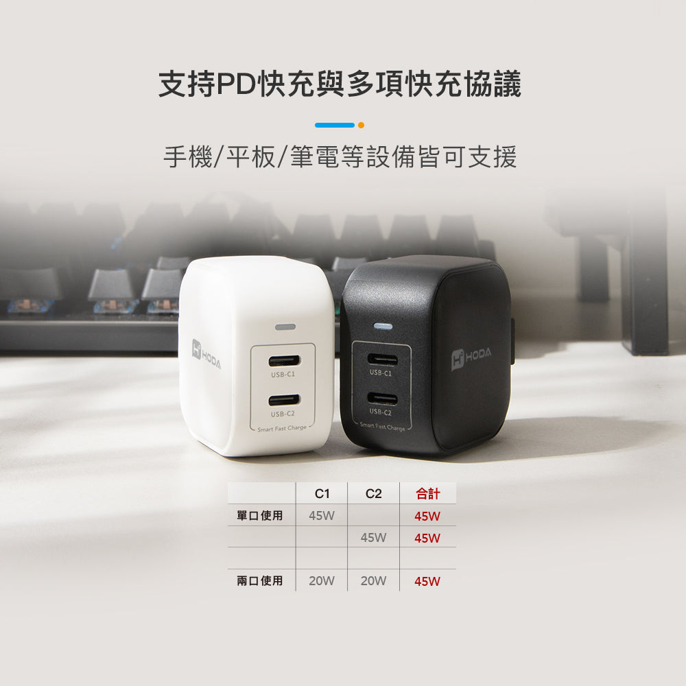 45W GaN氮化鎵智慧方型雙孔電源供應器 / 極速智能充電器 | HODA®