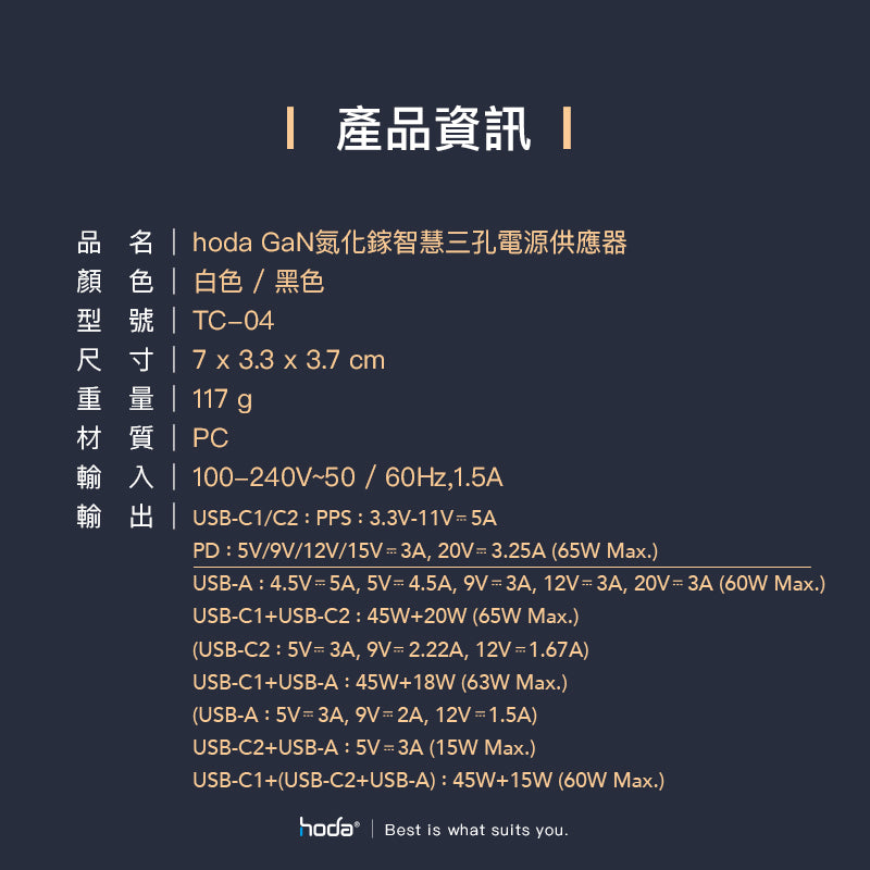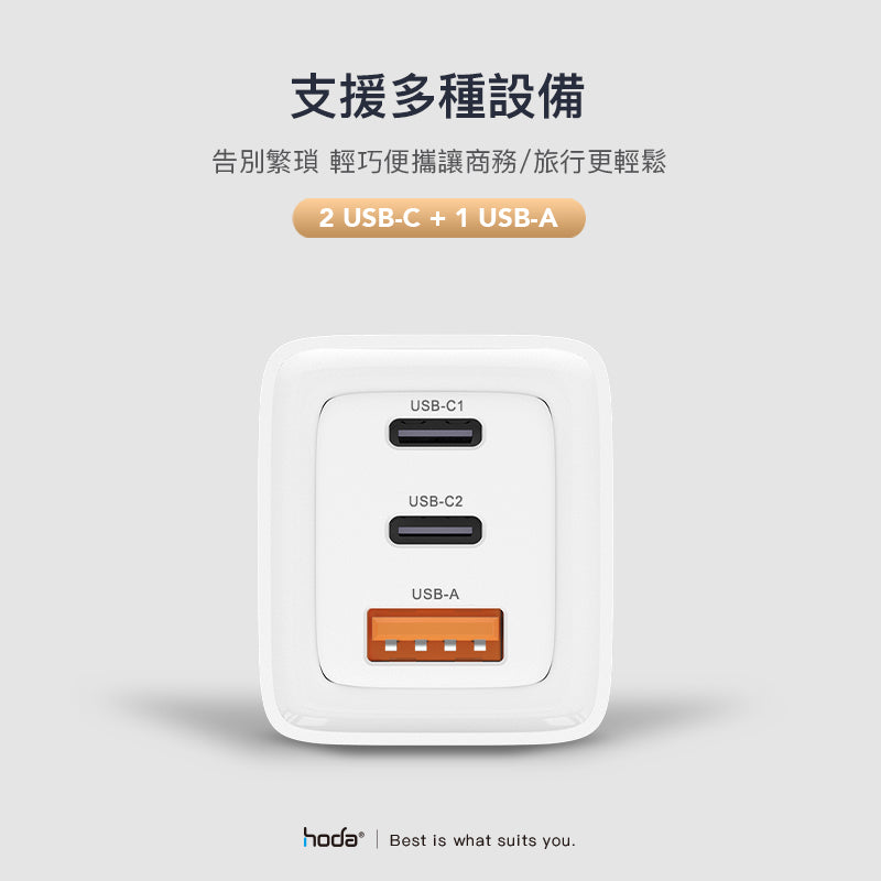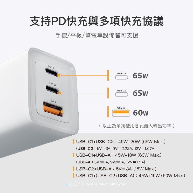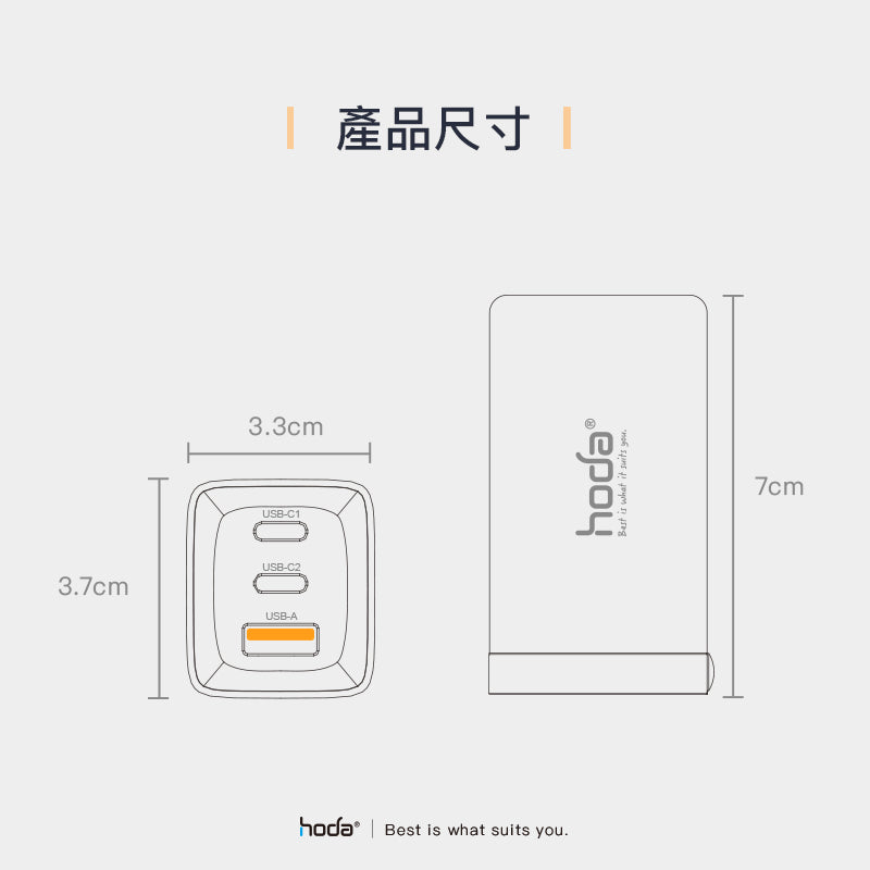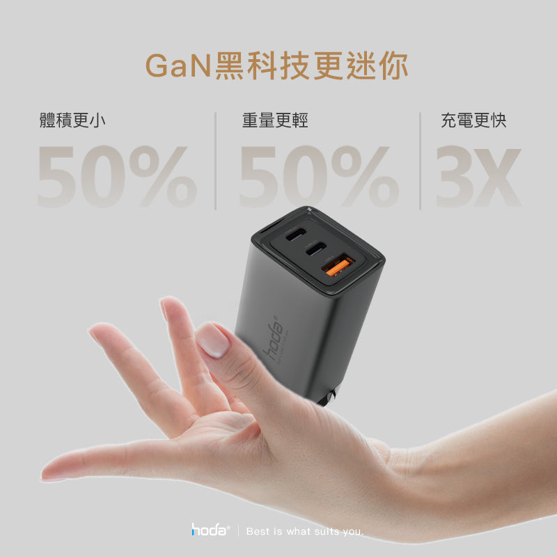 65W GaN氮化鎵智慧三孔電源供應器 / 極速智能充電器 | HODA®