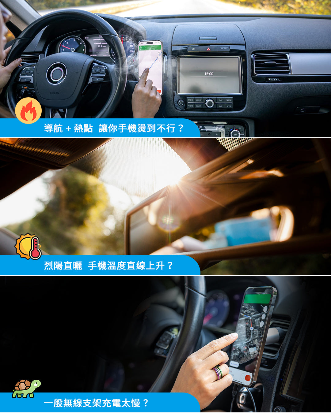 安裝方便,穩夾牢靠不傷車,單手操作,一放即吸,行駛中便利又安全。