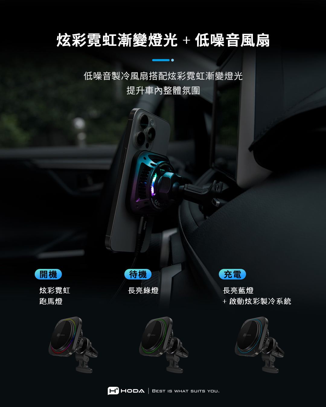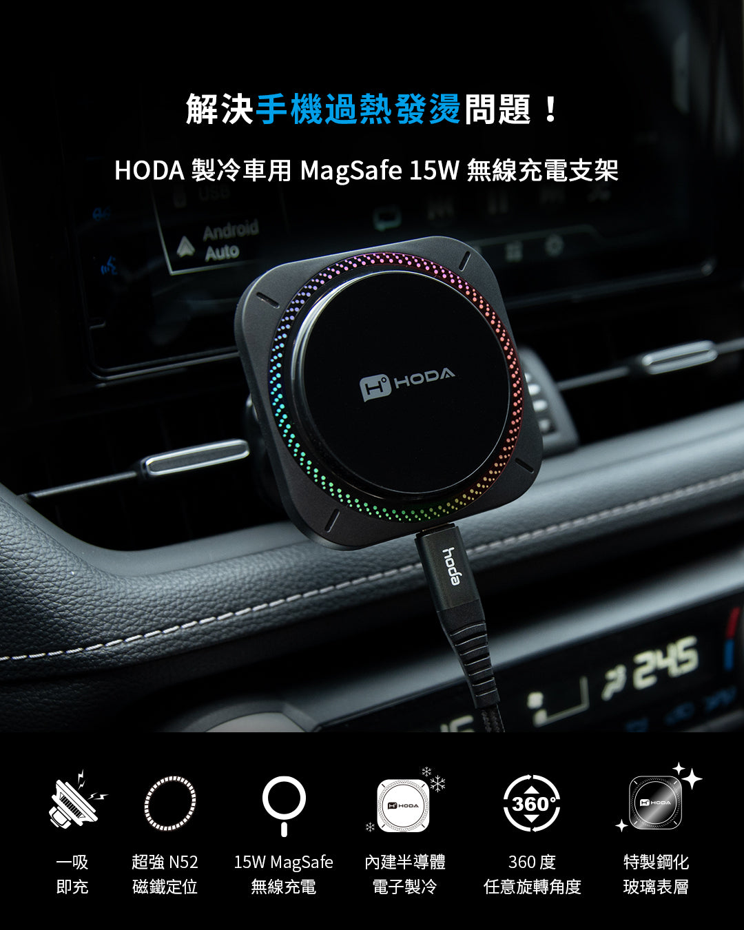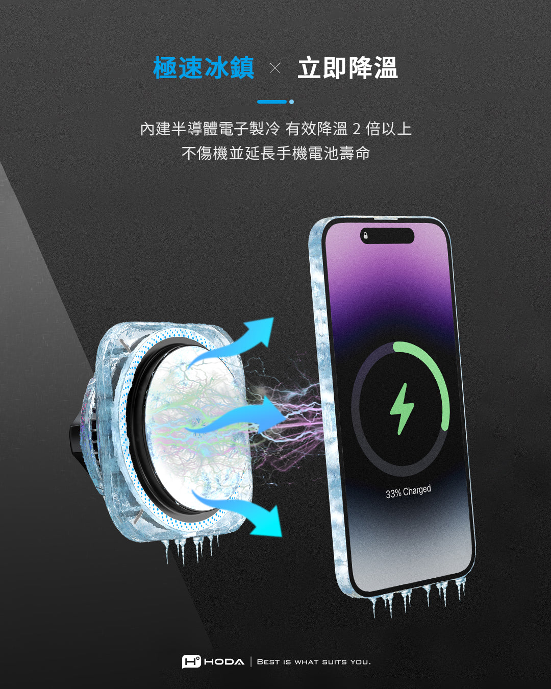 製冷款車用出風口磁吸充電式手機架 (支持MagSafe / 內附 C to C 充電線) | HODA®