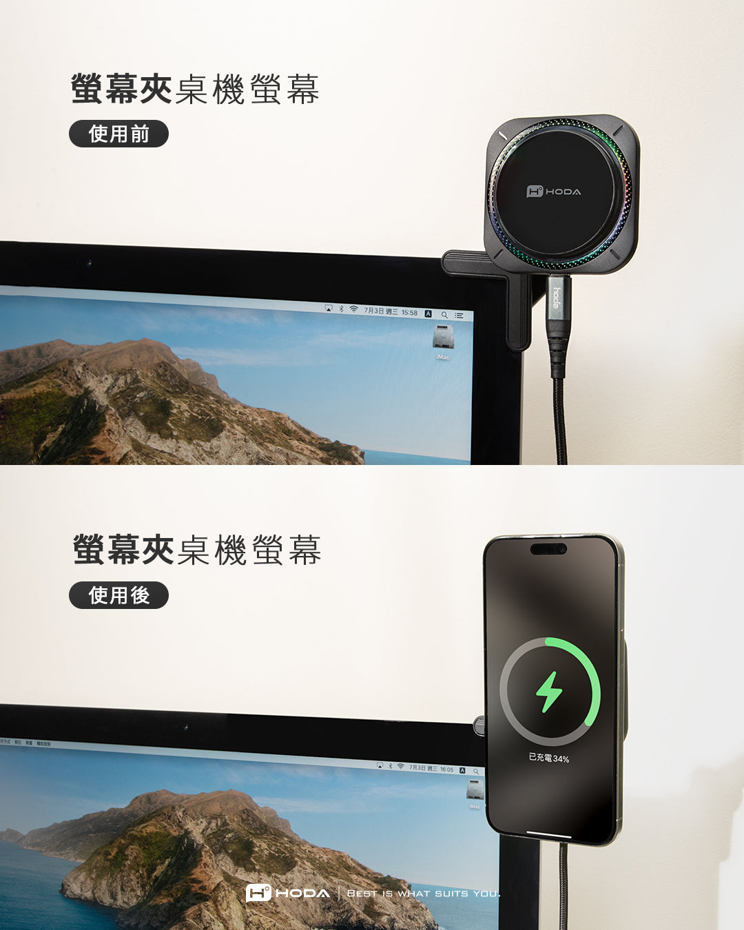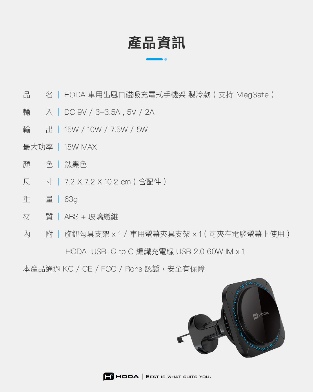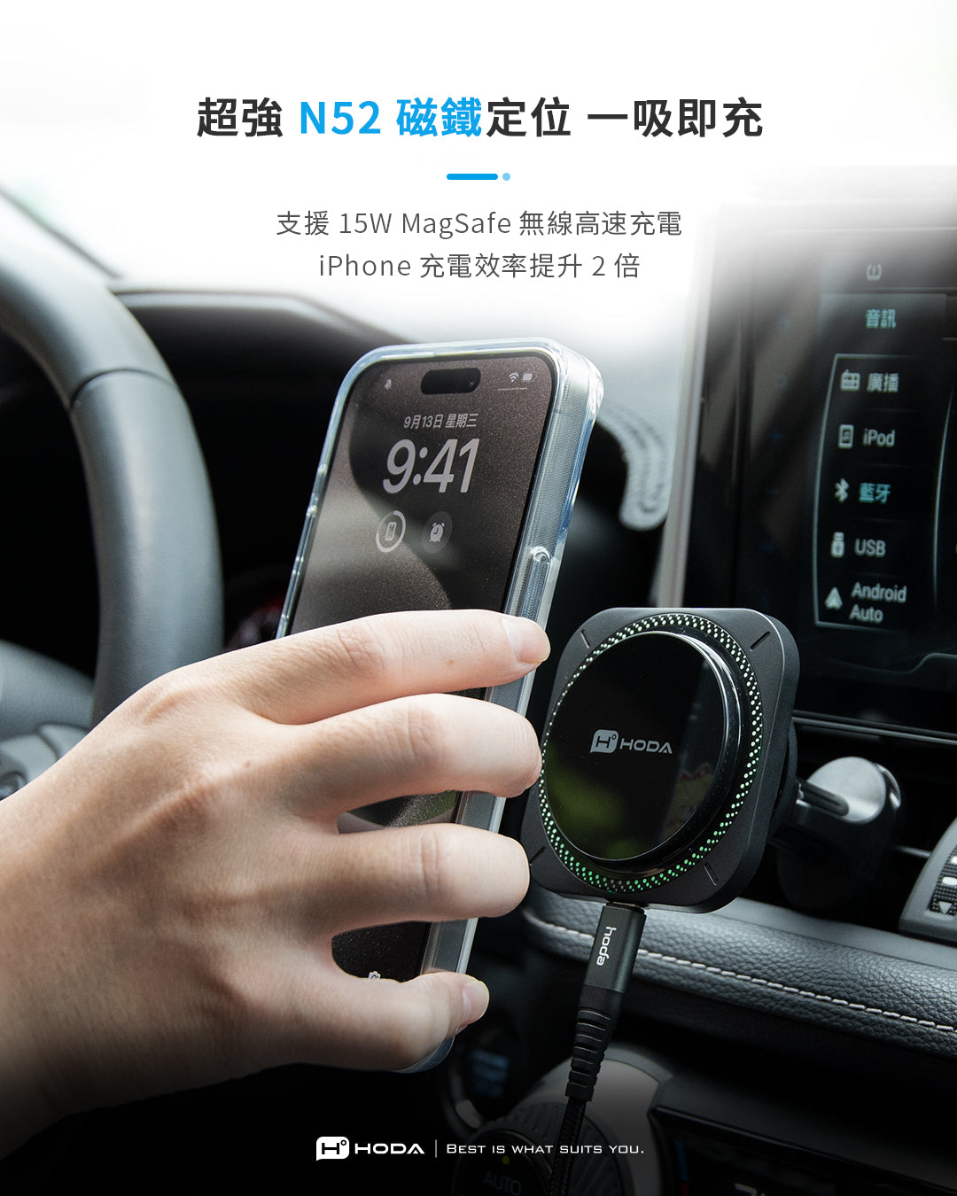 製冷款車用出風口磁吸充電式手機架 (支持MagSafe / 內附 C to C 充電線) | HODA®