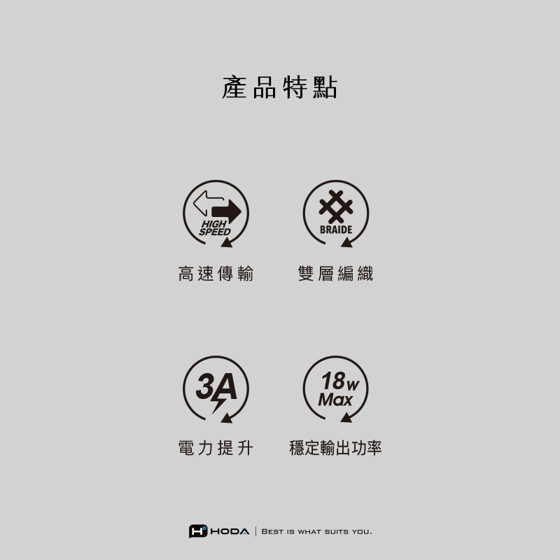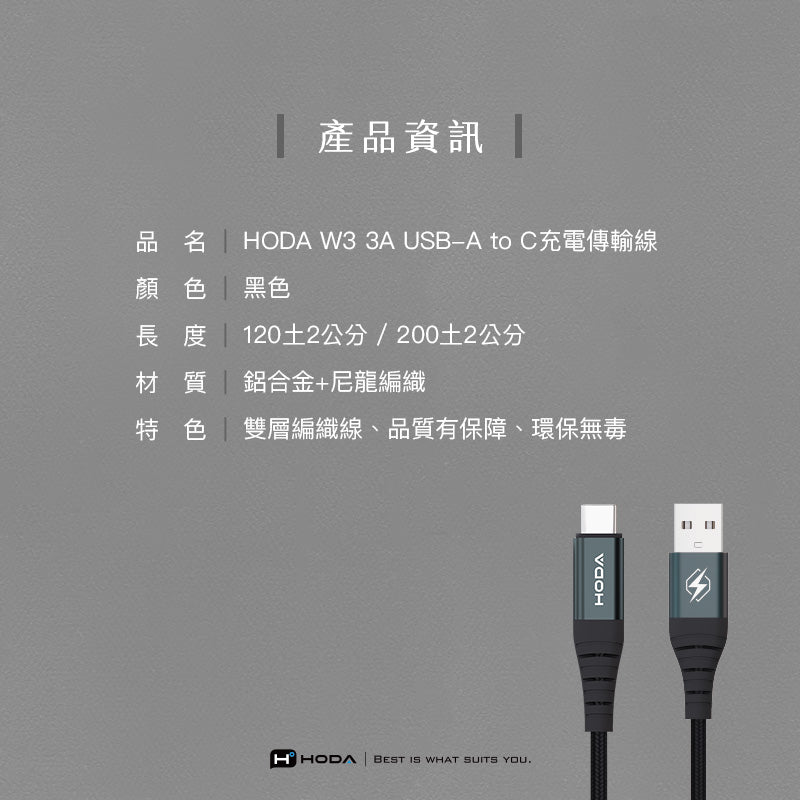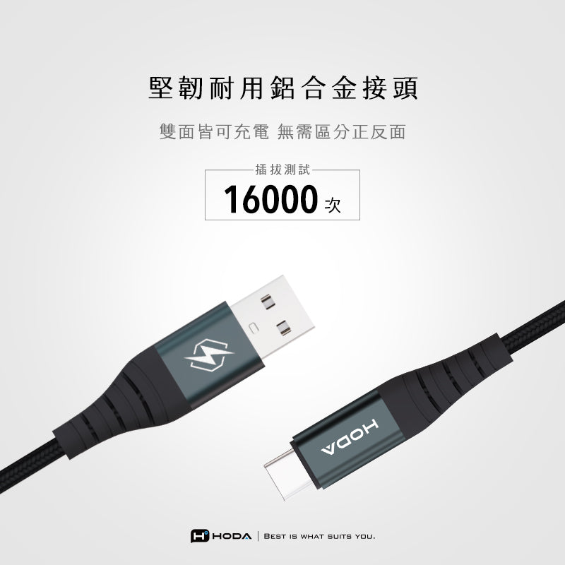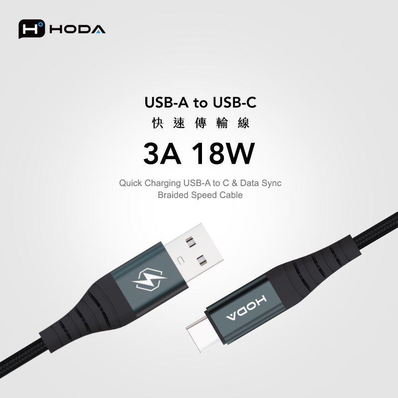 18W 3A USB 2.0【USB-A to C】120cm / 200cm 快速充電編織線材 | HODA®