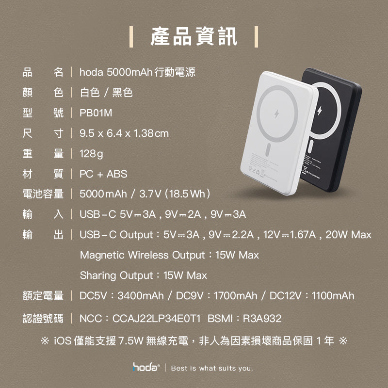 5000mAh 磁吸式行動電源 | HODA®