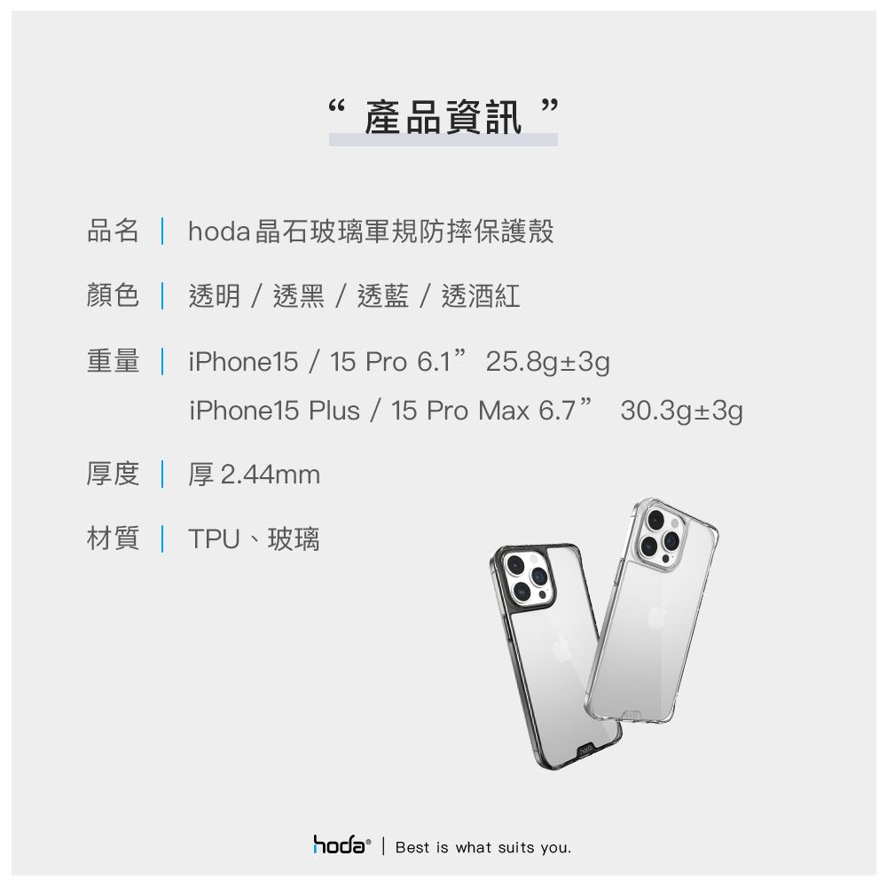 晶石玻璃軍規防摔保護殼 iPhone 15 系列 | HODA®