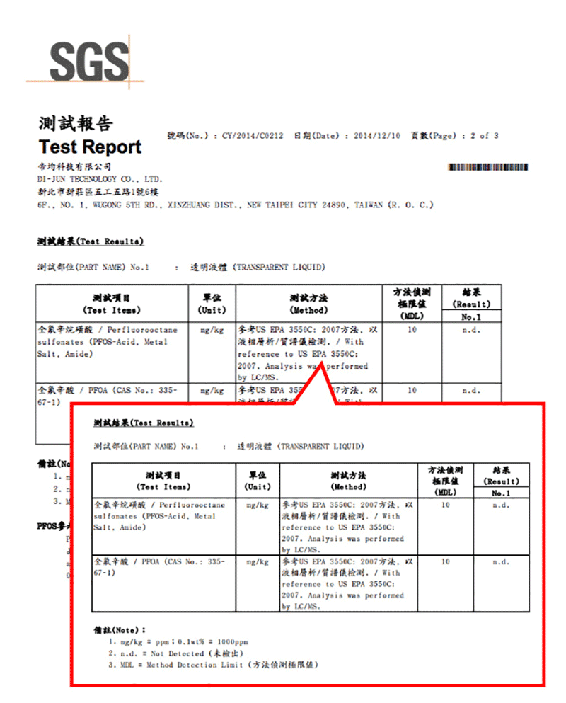 本產品經SGS檢測,確認不含PFOA/PFOS等有害物質,請消費者安心使用