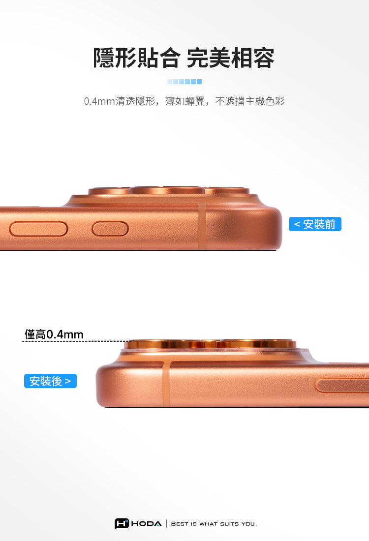hoda藍寶石鏡頭保護貼採用Anti-Reflection光學鍍膜技術,它通過減少光的反射而增加透光率與對比度,維持手機照相品質不失真。