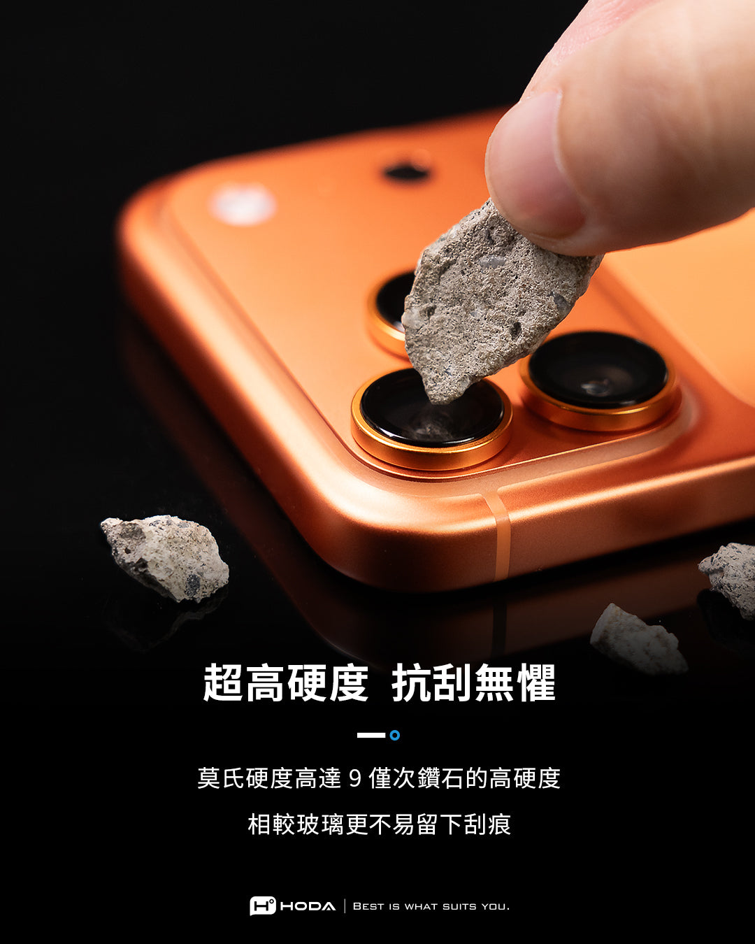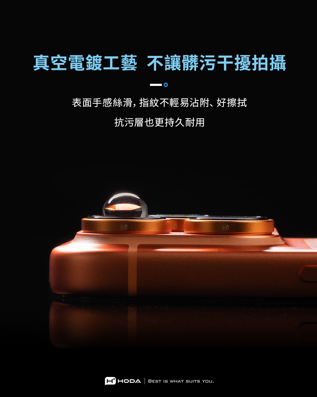 hoda藍寶石鏡頭保護貼採用Anti-Reflection光學鍍膜技術,它通過減少光的反射而增加透光率與對比度,維持手機照相品質不失真。