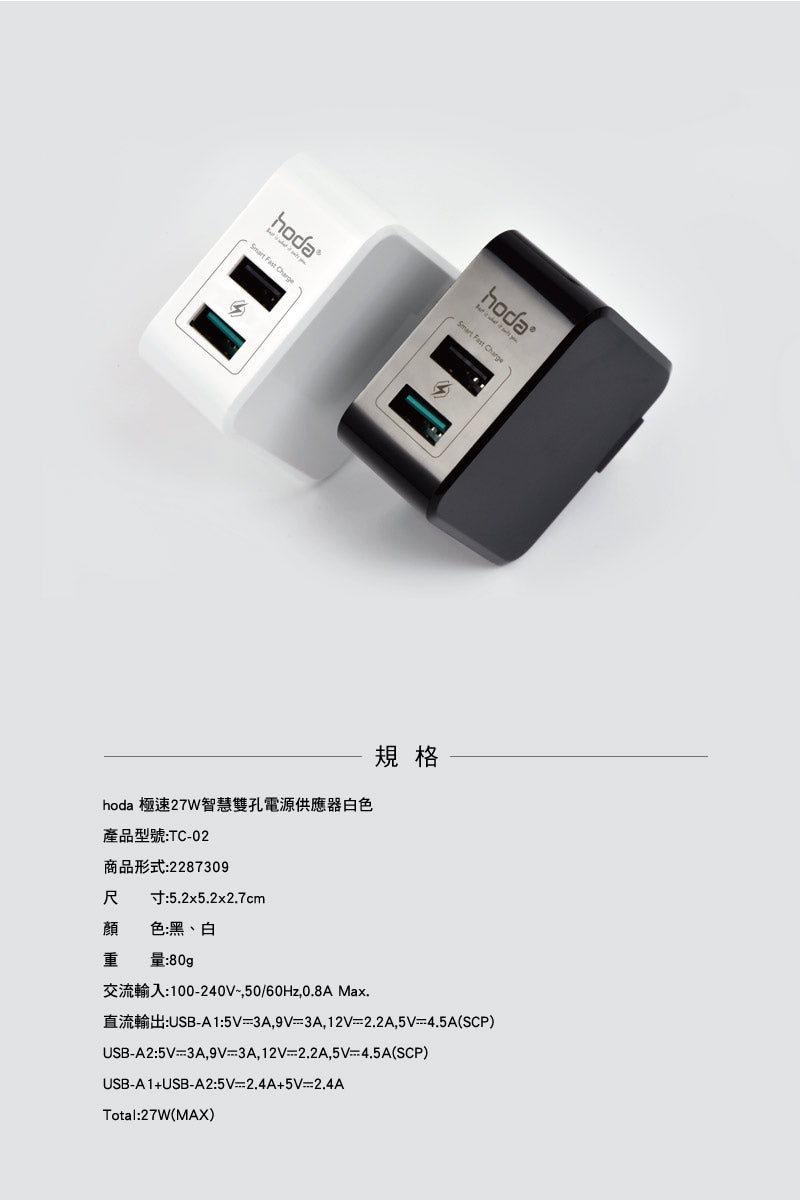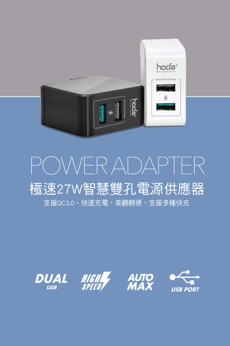 27W 智慧雙孔電源供應器/充電器 | HODA®