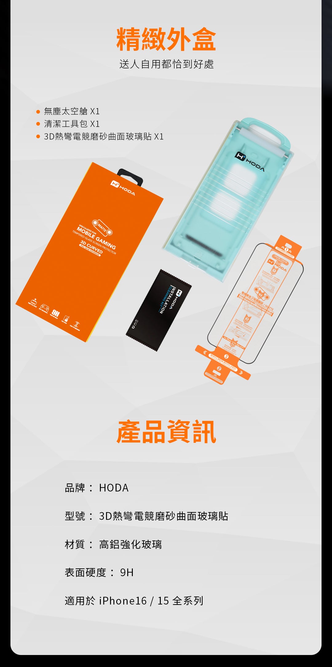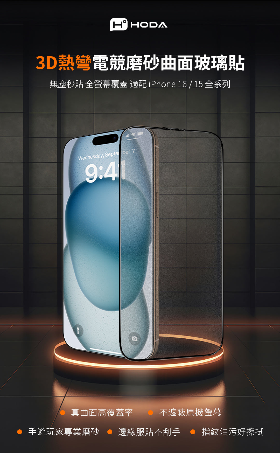 3D熱彎曲面 霧面玻璃保護貼 iPhone 17 / Air / 16 / 15 系列 附無塵滾輪太空艙貼膜神器 | HODA®
