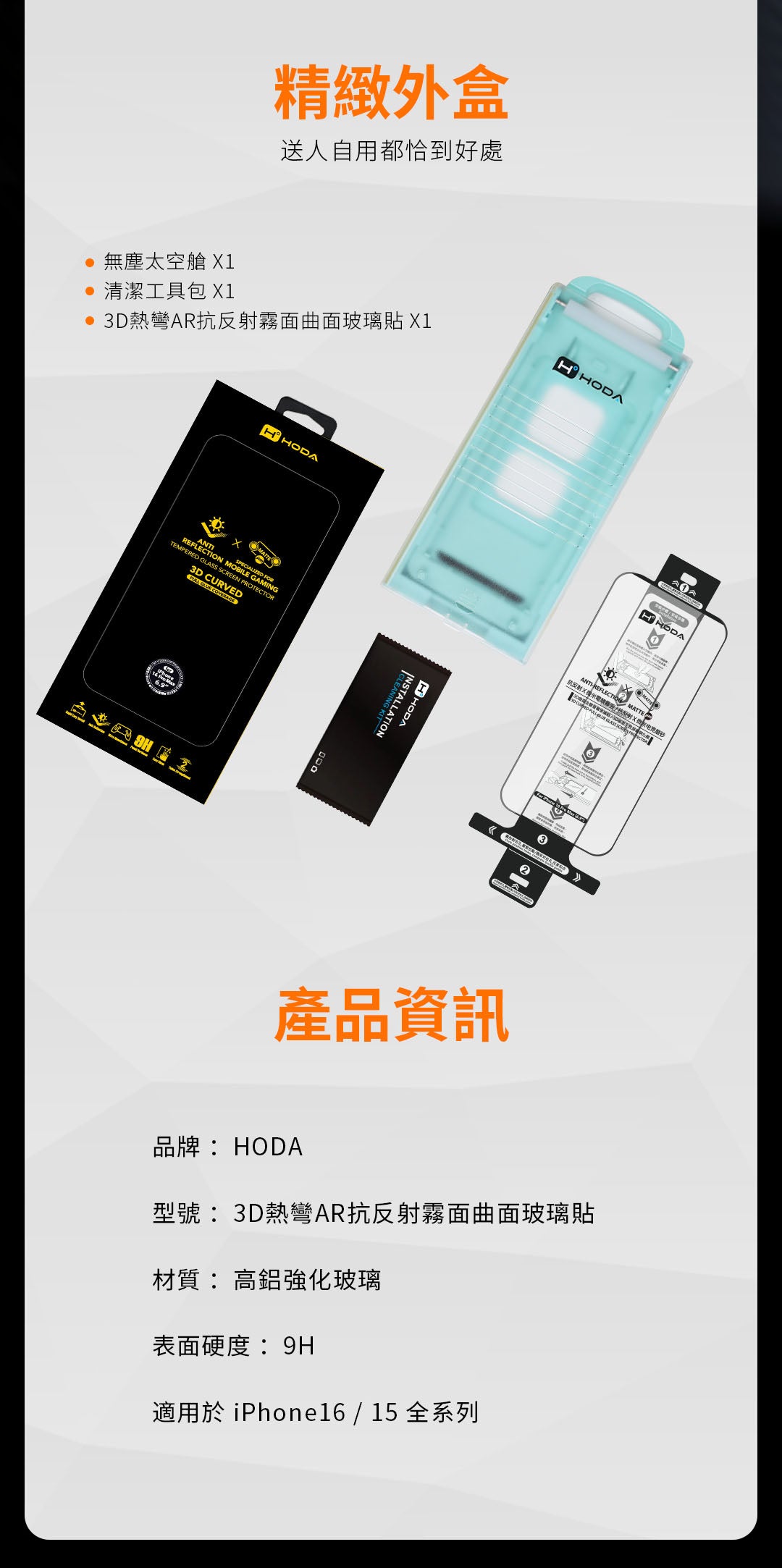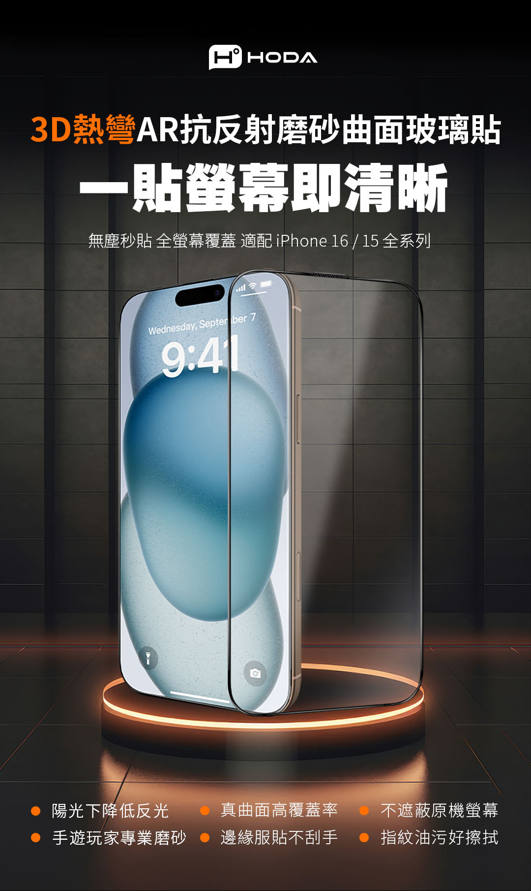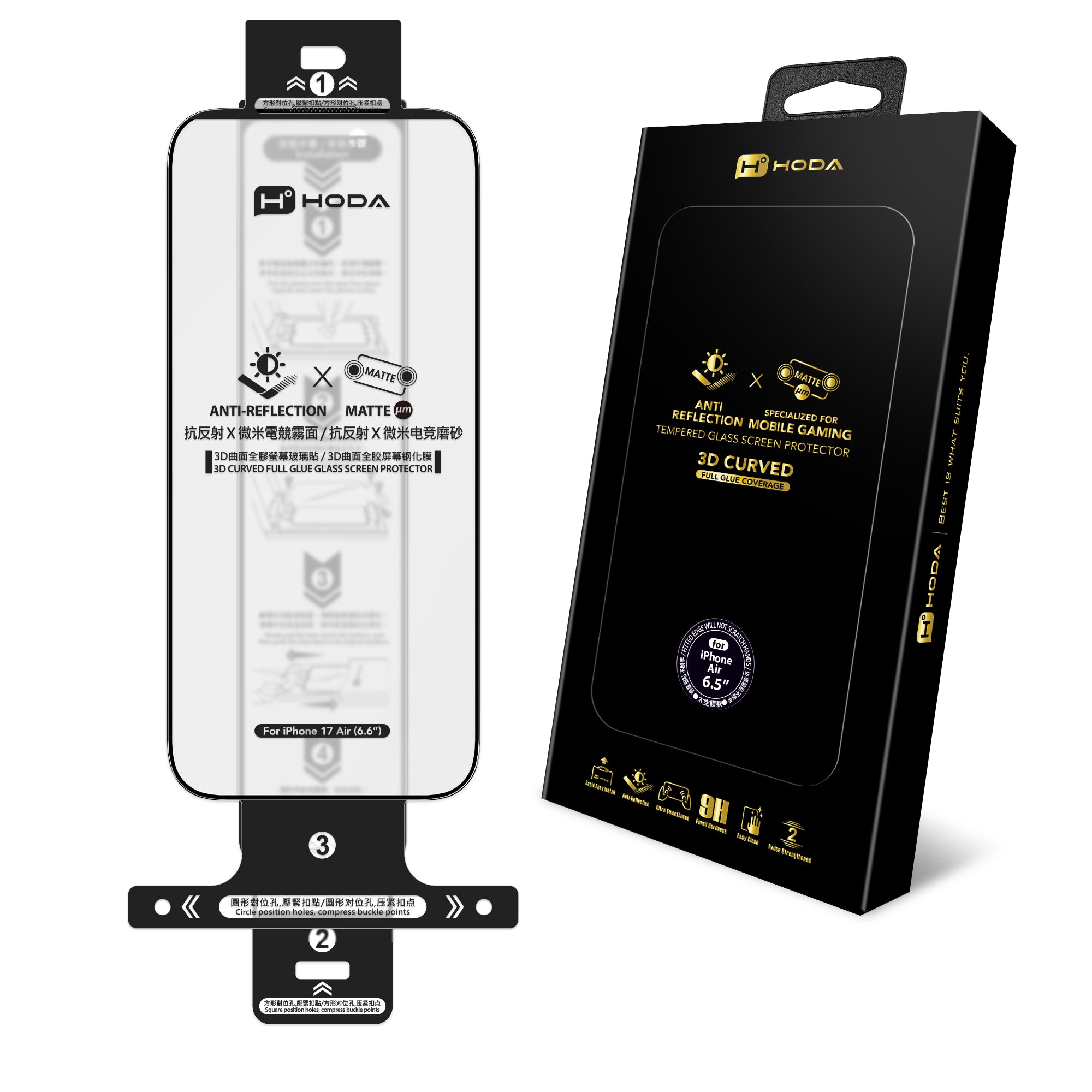 3D熱彎曲面 AR抗反射微米霧面玻璃保護貼 iPhone 17 系列 / Air / 16 Pro 系列附無塵滾輪太空艙貼膜神器 | HODA®