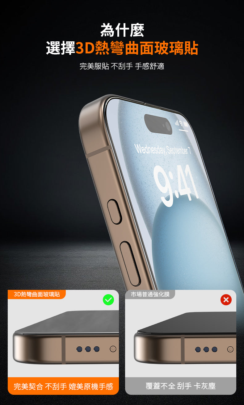 ✦ 3D熱彎工藝,邊緣手感滑順不刮手