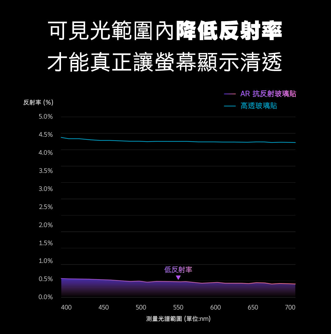 AR抗反射塗層能有效降低反射率提高透光度,讓螢幕在強光下也能清晰呈現,還原螢幕真實色彩。