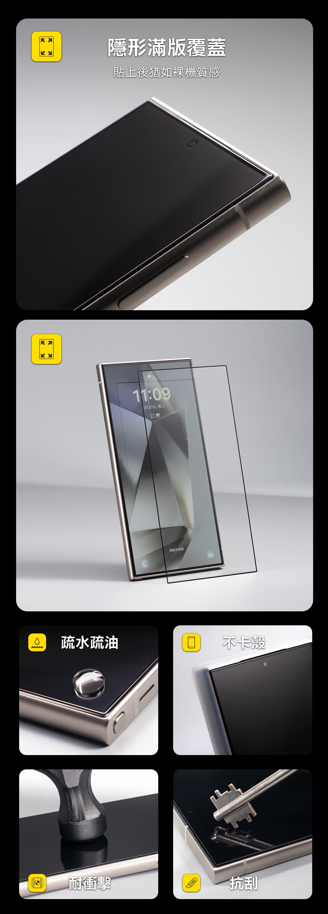 二次強化工藝,提升玻璃貼強度與邊緣強度,有效降低螢幕破損機率。
