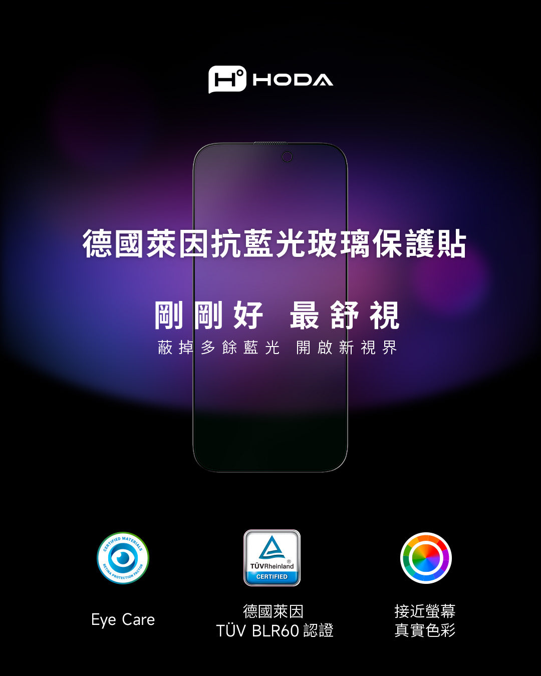 抗藍光玻璃保護貼 iPhone 16 系列 / 15 / 15 Plus 附無塵太空艙 Lite 貼膜神器 (德國萊因TÜV BLR60認證) | HODA®
