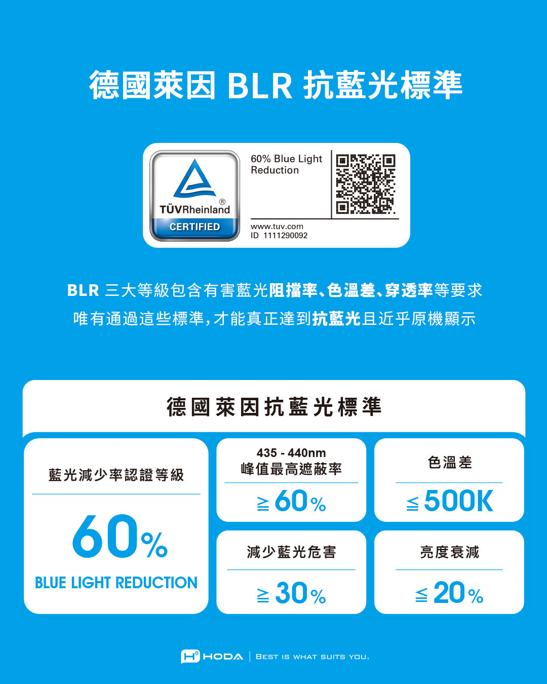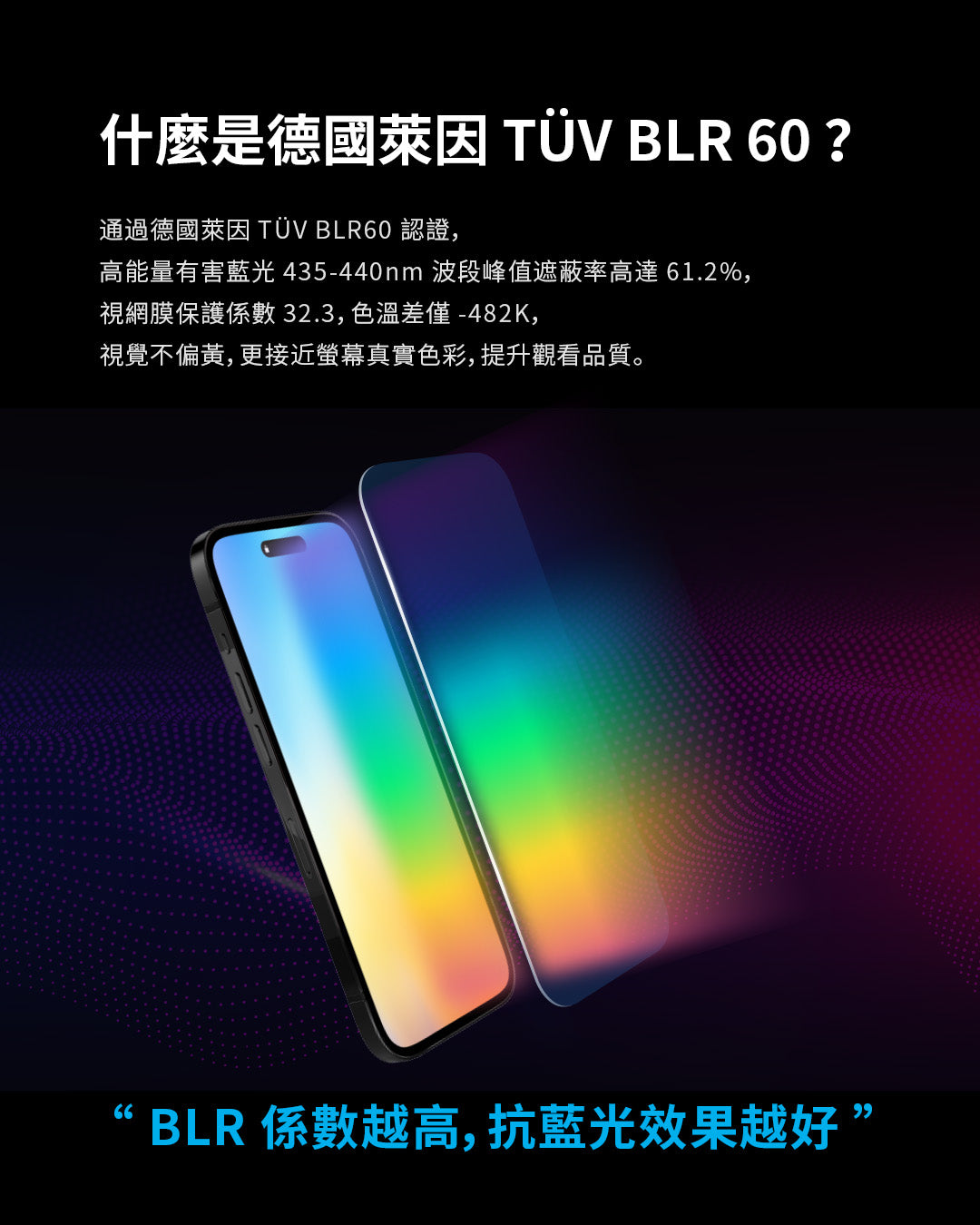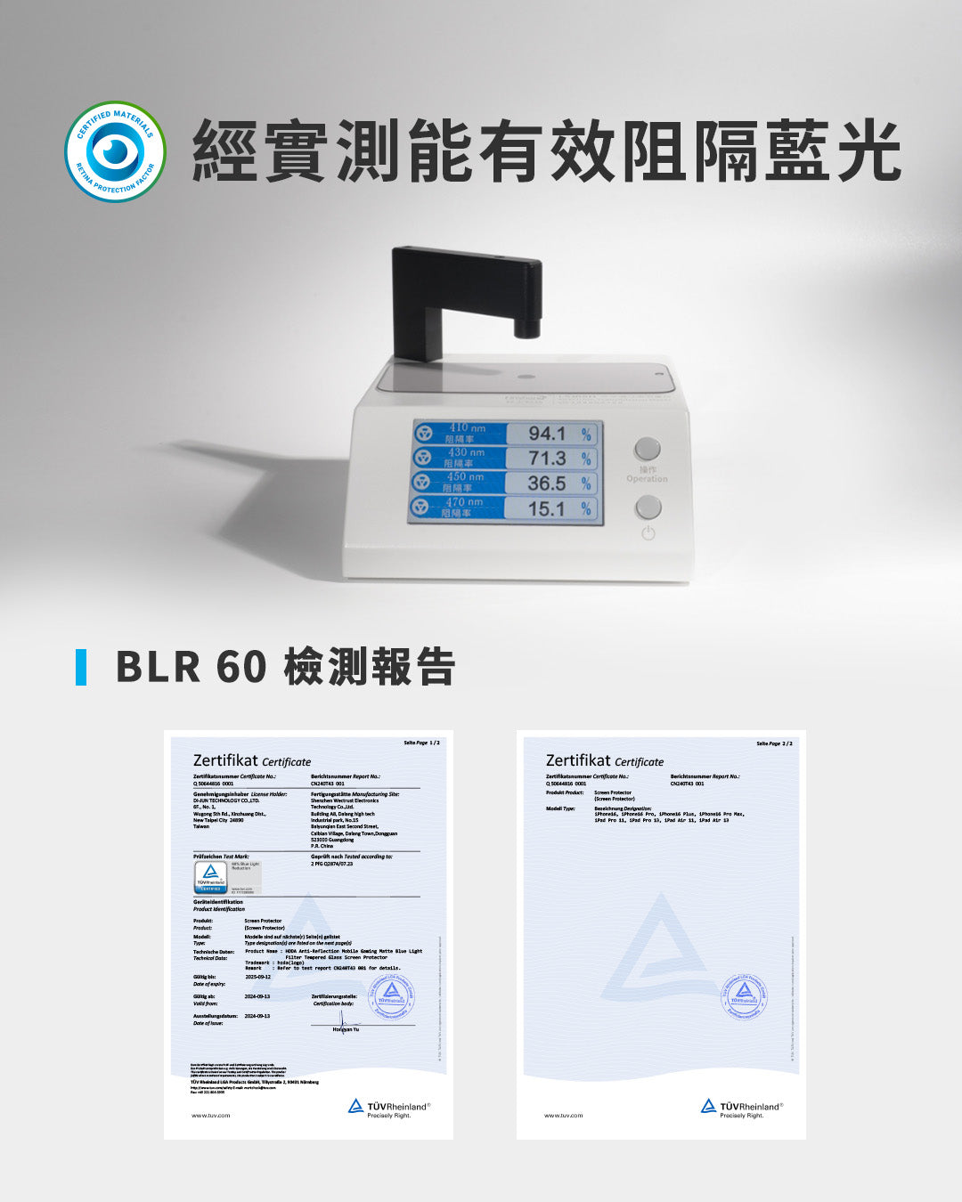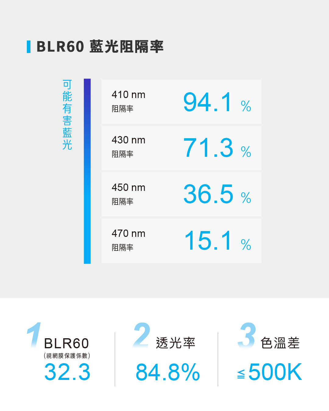 ✦ 通過德國萊因 BLR 60抗藍光認證