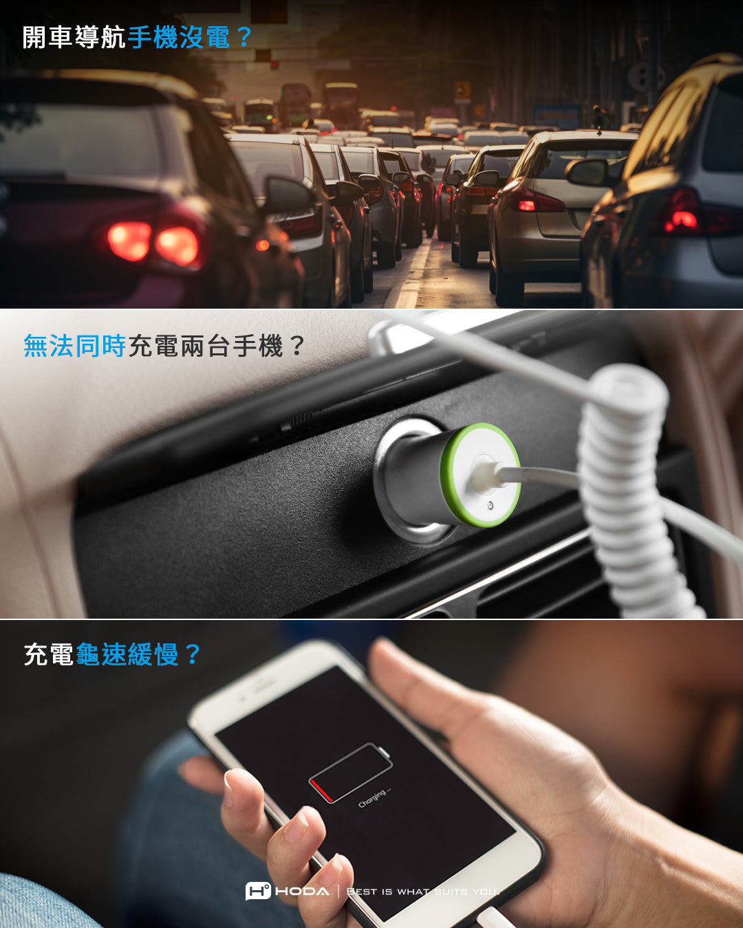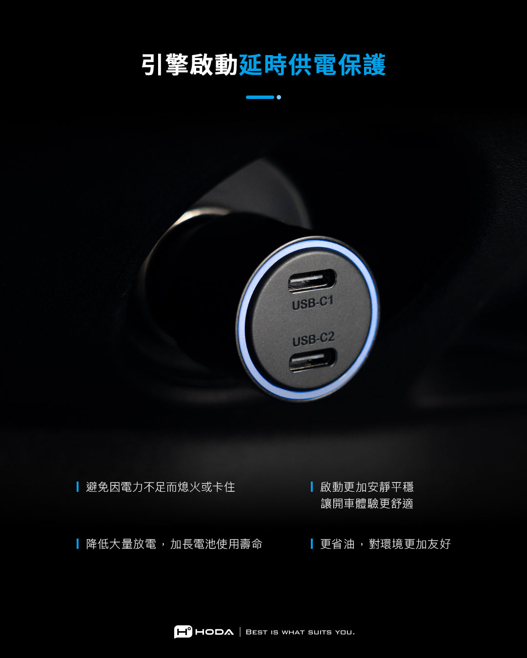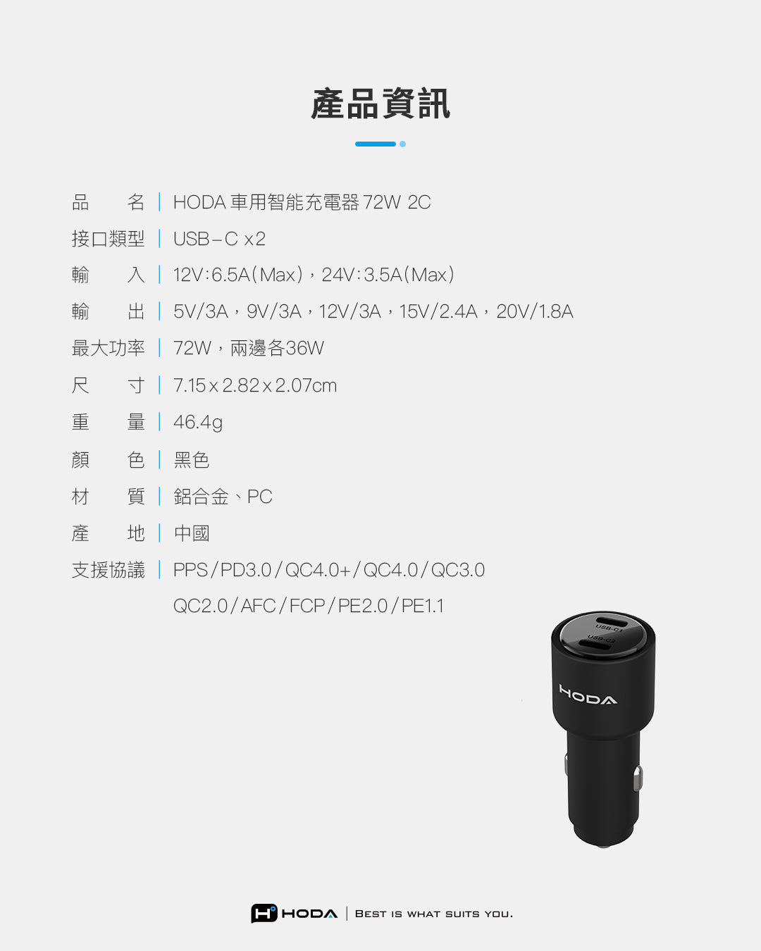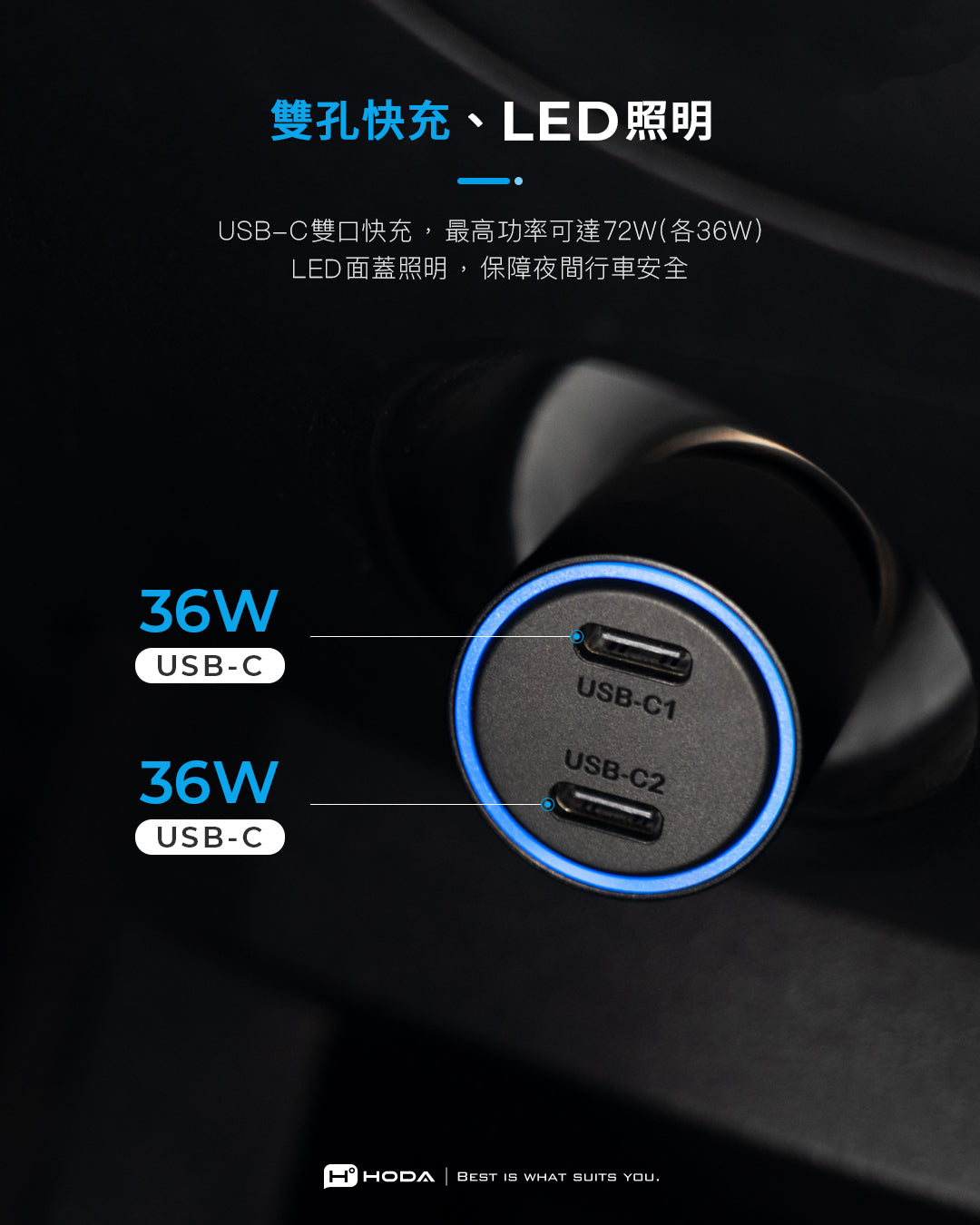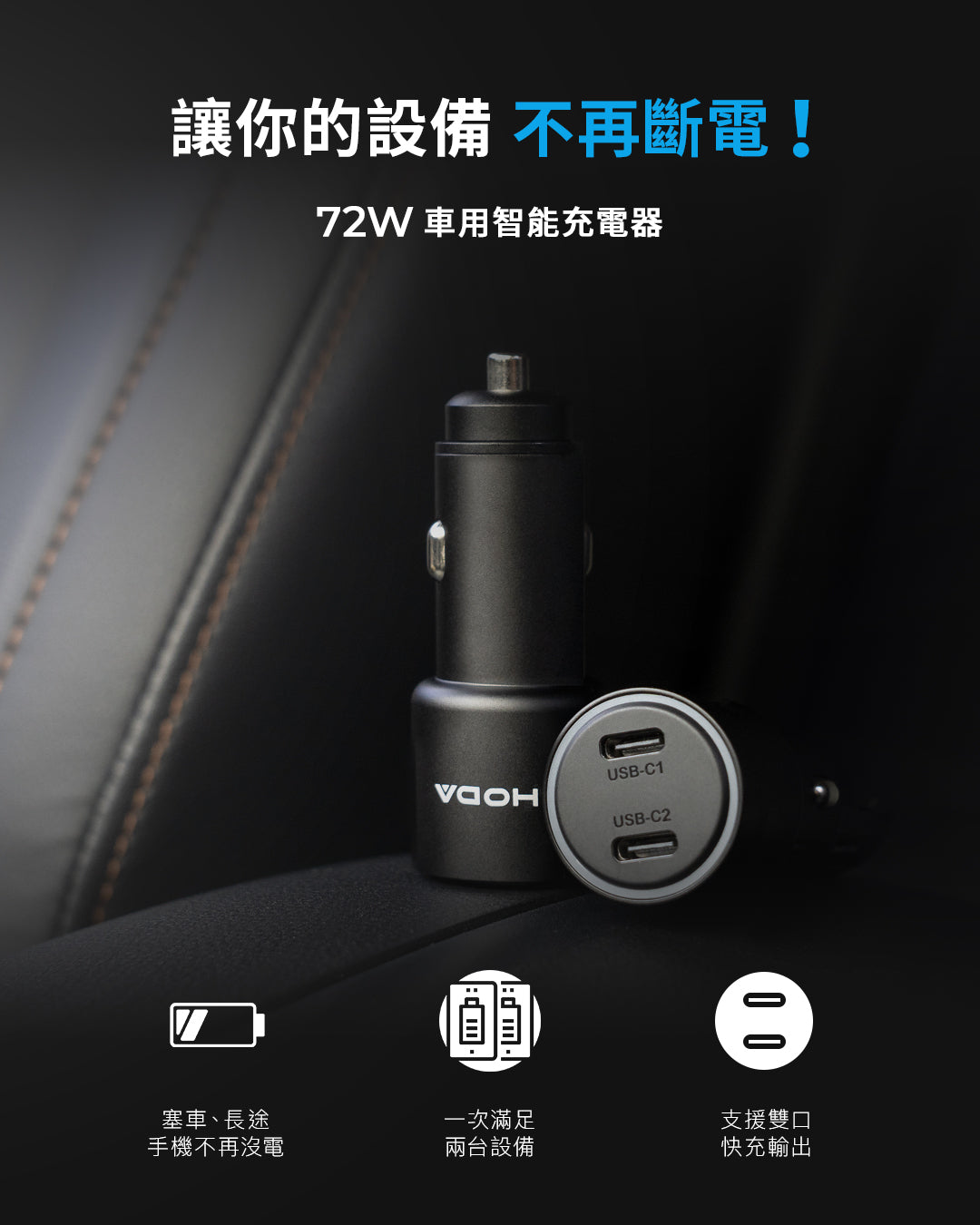 72W 雙孔 USB-C 車載PD快速充電器 | HODA®