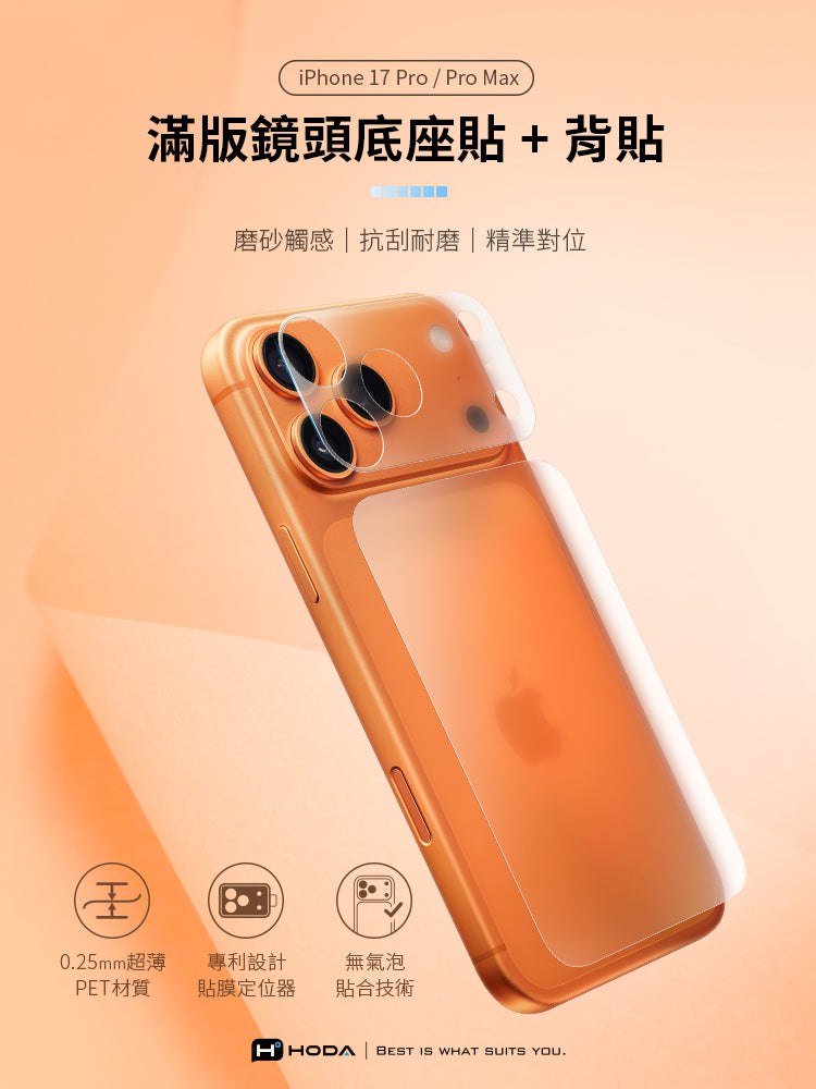 滿版鏡頭底座貼 + 霧面背貼 iPhone 17 Pro / Pro Max | HODA®